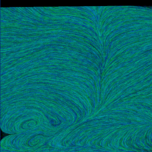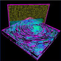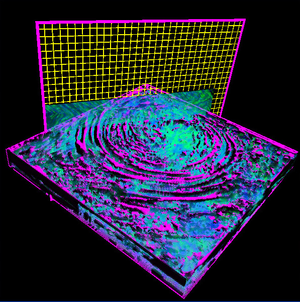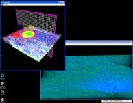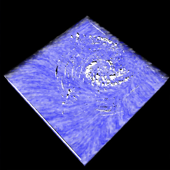 blue-white 3D Texture Advection + the Selection Plane with active Zoom Plane.