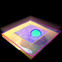 An additional 2D Selection Plane is inserted. A High-Resolution Representation of the flow is mapped to the Zoom-Plane, using different transferfuntions for the flow and the scalar values. Also 3D Texture Advection is shown in Figure 1.