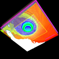 Figure 6 shows the rotation of the hurricane using 2D texture advection with an unnormalized vector field