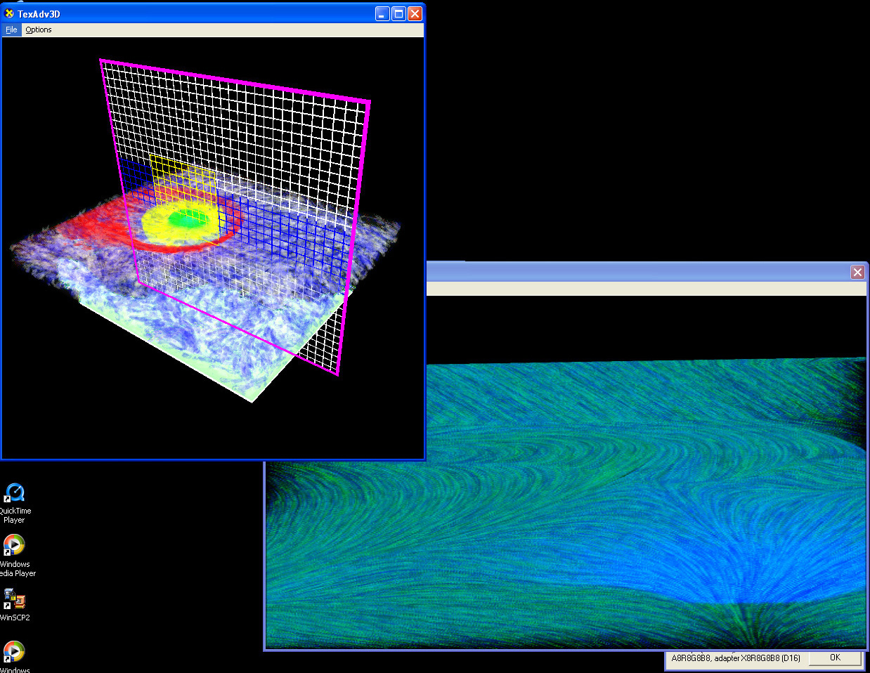 Combined Visualization 2 (3D Texture Advection, Scalar Field Visualization and 2D Texture Advection)