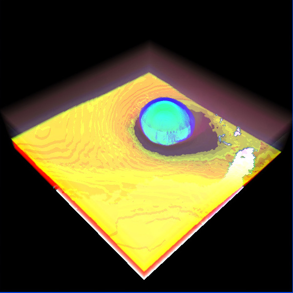 Our visualization system is an interactive, timedependent, 3D multi-field representation which allows the user to investigate a combined visualization of scalar field and vector field information. The system was developed in summer 2004 in the context of the diploma thesis of Tobias Schafhitzel advised by Daniel Weiskopf and Thomas Ertl.