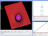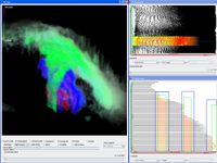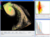3D rendering view. Here a transfer function can be applied to one selectable data